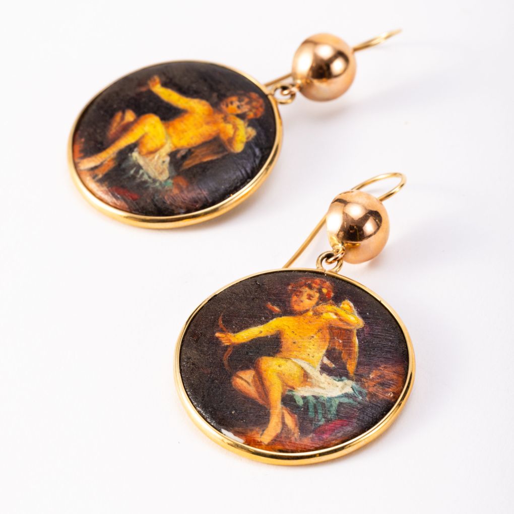 Orecchini in Oro con Miniature raffiguranti Angioletti del XIX Secolo